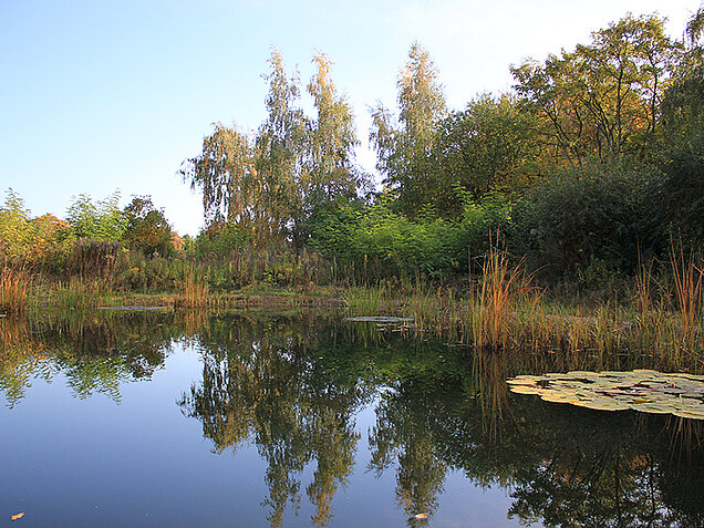Auf strikte Abgrenzungen zwischen den 52 Parzellen wurde verzichtet, um zusammenhängende Lebensräume zu erhalten und keine unüberwindbaren Barrieren für Kleinlebewesen zu errichten. Auch ein besserer Austausch zwischen den Gärtner*innen ist dadurch möglich. So ähnelt der Landschaftspflegehof eher einem wilden Park als einer Schreberkolonie.